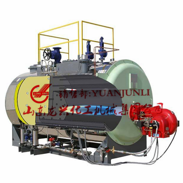 燃油燃气蒸汽锅炉为卧式快装内燃三回程火管锅炉。采用偏置炉胆湿背式结构,高温烟气依次冲刷第二及第三回程烟管,然后由后烟室经烟囱排入大气。锅炉装有活动的前后烟箱盖,使锅炉检修方便。锅炉配置技术性能良好燃烧器,采用了燃烧自动比例调节,给水自动调节,程序启停,全自动运行等先进技术,并具有高低水位报警和极低水位、超高汽压、熄火等自动保护功能。该型锅炉具有结构紧凑、安全可靠、操作简便、安装迅速、污染少、噪音低、效率高等特点。